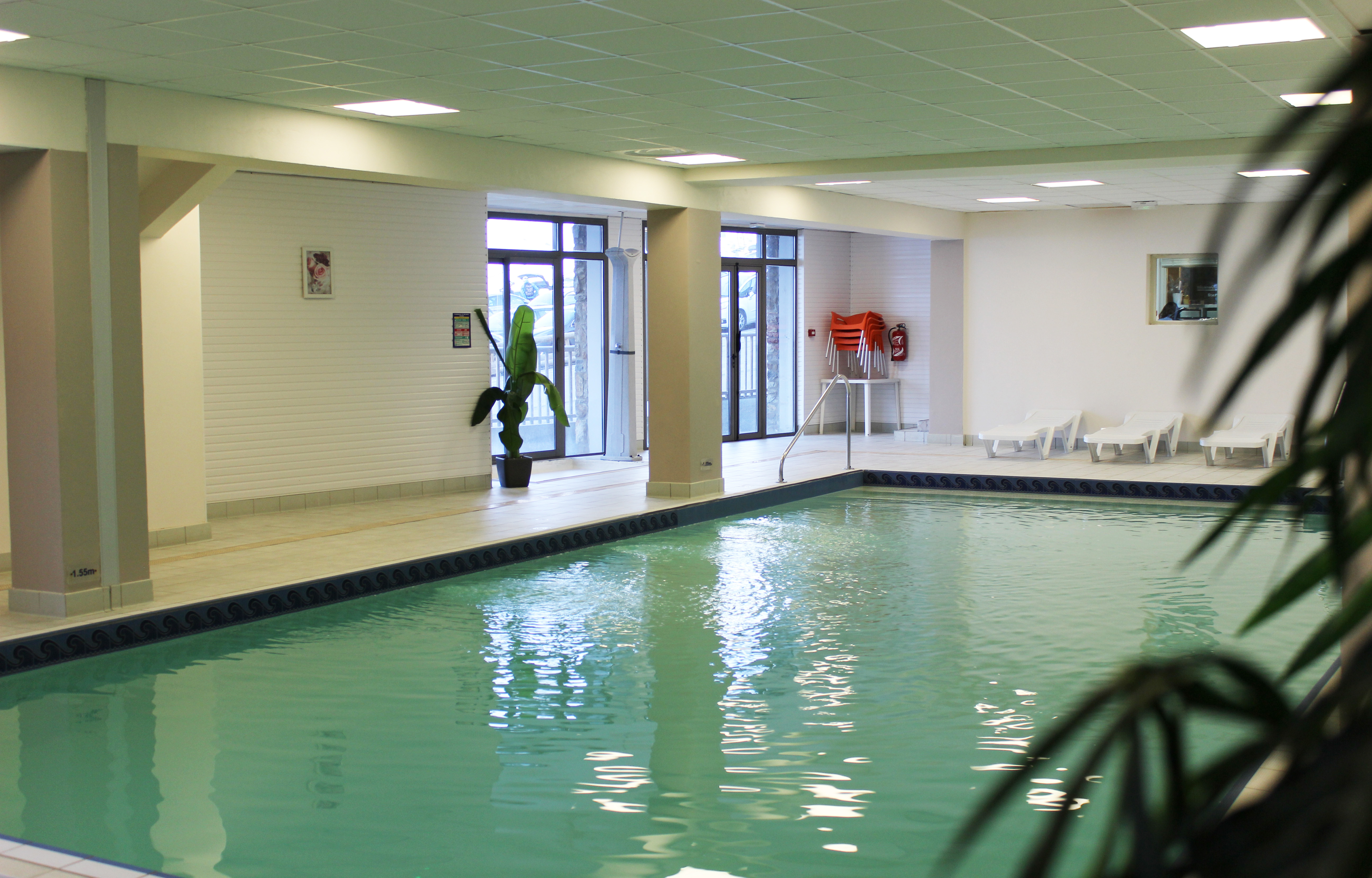 - Espace ludique avec piscine intérieure chauffée (12m x 6m) dans le bâtiment principal en libre accès de 0.95 m à 1.50 m de profondeur et une vue sur la montagne. Ouverture tous les jours de 10h à 20h.